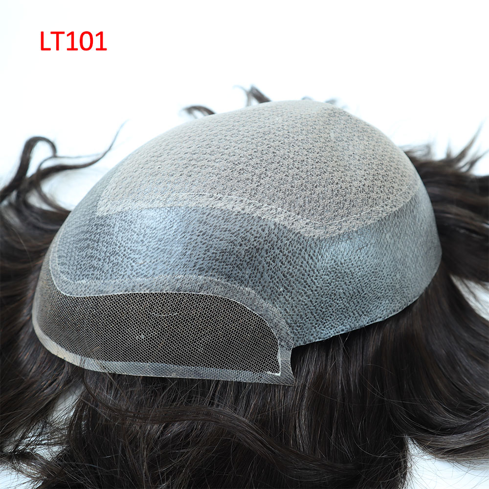 LT101 Front swiss lace, top injection lace covered with diamond lace, gauze pu side and back